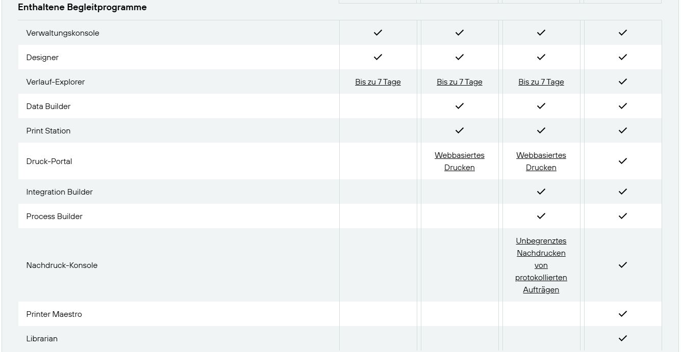 Folgende Applikationspakete sind in den verschiedenen Editionen verfügbar: